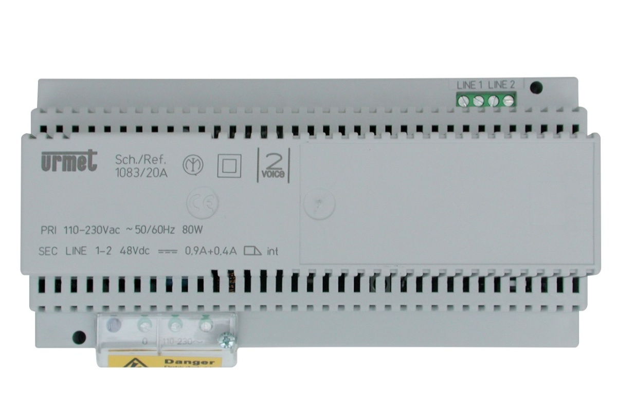 - Zdroj 1083/20A je základním prvkem systému 2VOICE (1083) a vyskytuje se ve všech typech aplikací systému.