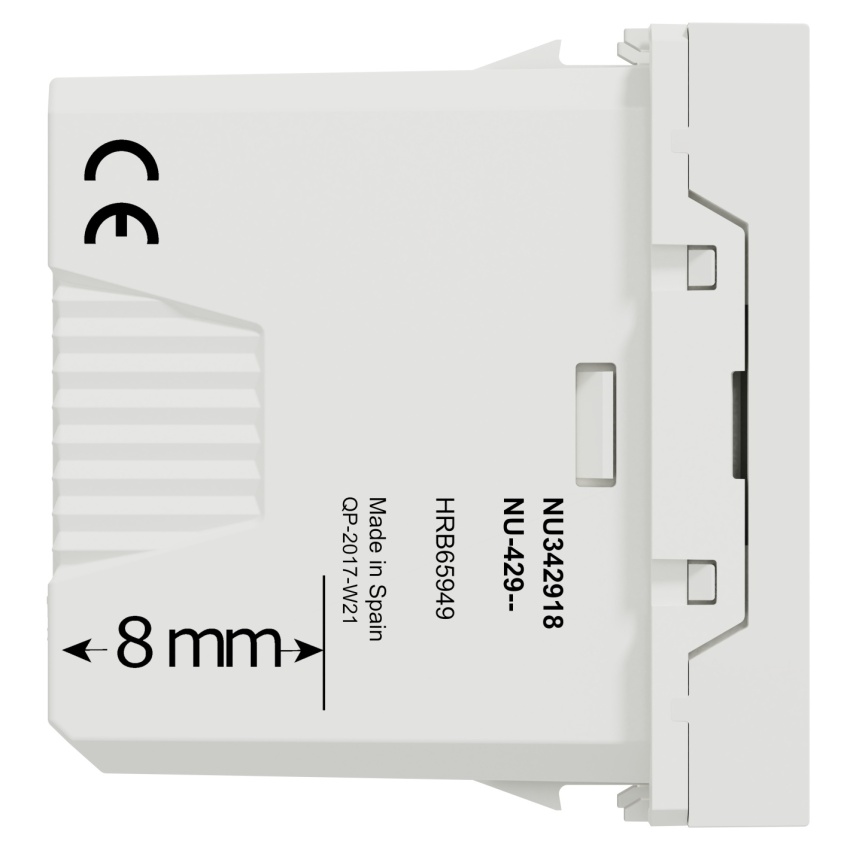 Schneider Electric Nová Unica USB datová zásuvka NU342918 je mechanismus v barvě bílé Připojovací svorky tohoto datového konektoru USB jsou šroubové. Šířka je 22,5 mm, výška 45 mm, hloubka 28 mm, hloubka zapuštění 19,7 mm a hmotnost výrobku je 0,014 kg. S 1 modulem Povrchová úprava je lesklá, což zajišťuje jasný, rovnoměrný a příjemný vzhled. Jeho způsob upevnění je nacvaknutí. Tento výrobek se prodává v sadě po 10 kusech. Kromě toho neobsahuje halogeny, což je prospěšné pro vaše zdraví. Tento datový konektor USB je šetrný k životnímu prostředí a je také ekologickým prémiovým výrobkem. A neobsahuje rtuť A bez těžkých kovů, což jako vždy pečuje o životní prostředí a vaše zdraví. Datový konektor USB je vyroben z PC (polykarbonátu) GF10 FR, termoplastu stabilizovaného ABS-UV, takže je maximálně odolný. Kromě toho dosahuje stupně ochrany IK02, který může pomoci chránit před nárazem. A co víc, splňuje směrnice 2014/30/EU - elektromagnetická kompatibilita. Také je šetrný k životnímu prostředí, s dosaženou odolností proti UV záření, acetonu, alkoholu, čpavku, bělidlu, tekutému mýdlu, oleji, benzínu, kapalině na mytí oken. Navíc dobře splňuje normy EN 61000-6-1, EN 61000-6-3, EN 62680-2-1. Tento datový konektor USB rovněž neobsahuje SVHC (látky vzbuzující mimořádné obavy).
