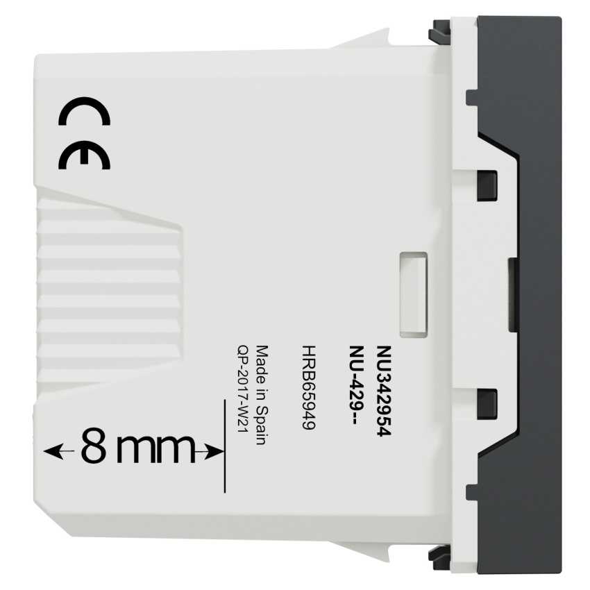 Schneider Electric Nová Unica USB datová zásuvka NU342954 je mechanismus v barvě antracitové Připojovací svorky tohoto datového konektoru USB jsou šroubové. Šířka je 22,5 mm, výška 45 mm, hloubka 28 mm, hloubka zapuštění 19,7 mm a hmotnost výrobku je 0,014 kg. S 1 modulem Povrchová úprava je matná, čímž získáte další bod navíc pro design vašeho interiéru. Jeho způsob upevnění je nacvaknutí. Tento výrobek se prodává v sadě po 10 kusech. Kromě toho neobsahuje halogeny, což je prospěšné pro vaše zdraví. A co víc, toto zařízení je kvalifikováno jako ekologický prémiový výrobek s minimálním použitím nebezpečných látek. A neobsahuje rtuť A bez těžkých kovů, což jako vždy pečuje o životní prostředí a vaše zdraví. Tento datový konektor USB je vyroben z PC (polykarbonátu) GF10 FR, termoplastického materiálu stabilizovaného ABS-UV a je spolehlivý a odolný. Kromě toho dosahuje stupně ochrany IK02, který může pomoci chránit před nárazem. A co víc, splňuje směrnice 2014/30/EU - elektromagnetická kompatibilita. Také je šetrný k životnímu prostředí, s dosaženou odolností proti UV záření, acetonu, alkoholu, čpavku, bělidlu, tekutému mýdlu, oleji, benzínu, kapalině na mytí oken. Navíc dobře splňuje normy EN 61000-6-1, EN 61000-6-3, EN 62680-2-1. Tento datový konektor USB rovněž neobsahuje SVHC (látky vzbuzující mimořádné obavy).