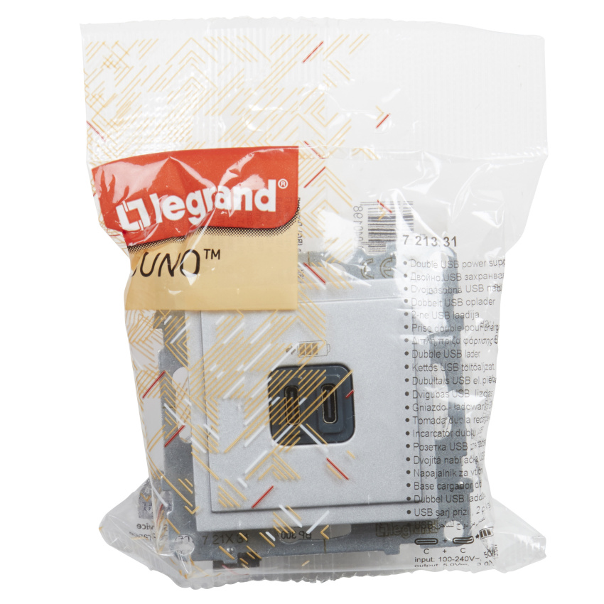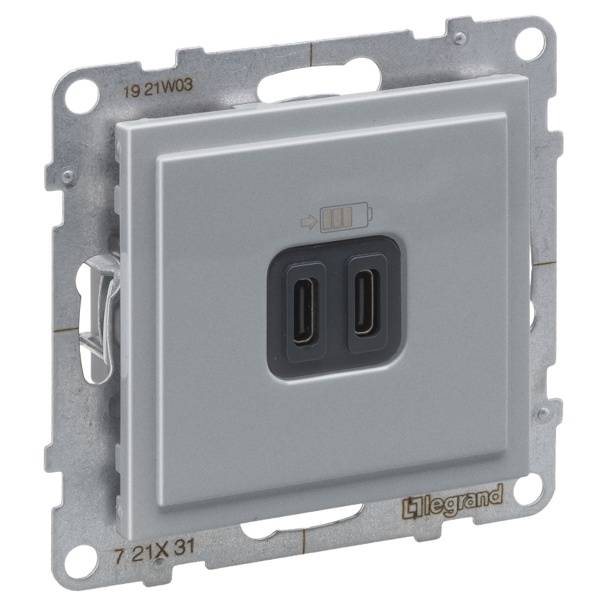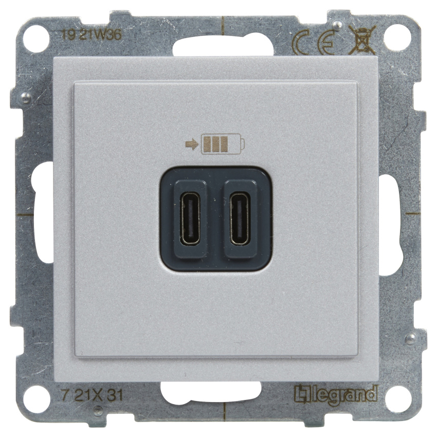 USB nabíječka dvojitá typ C+C Legrand SUNO 721331 hliník