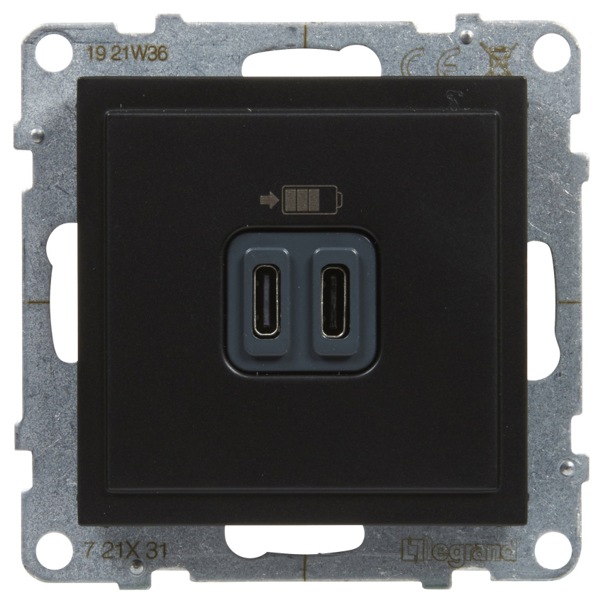 USB nabíječka dvojitá typ C+C Legrand SUNO 721431 černá