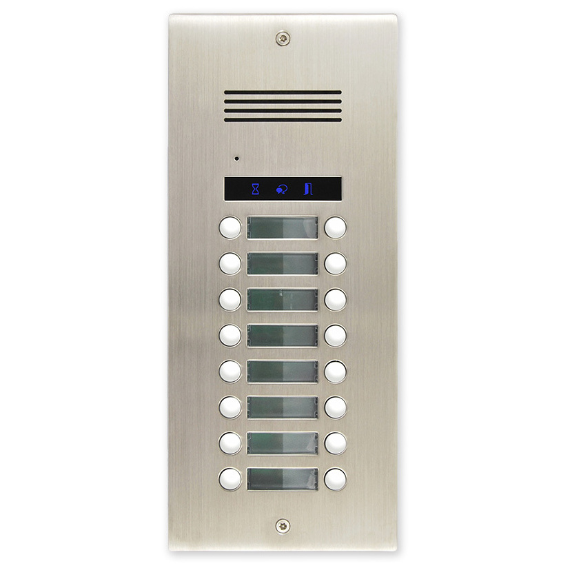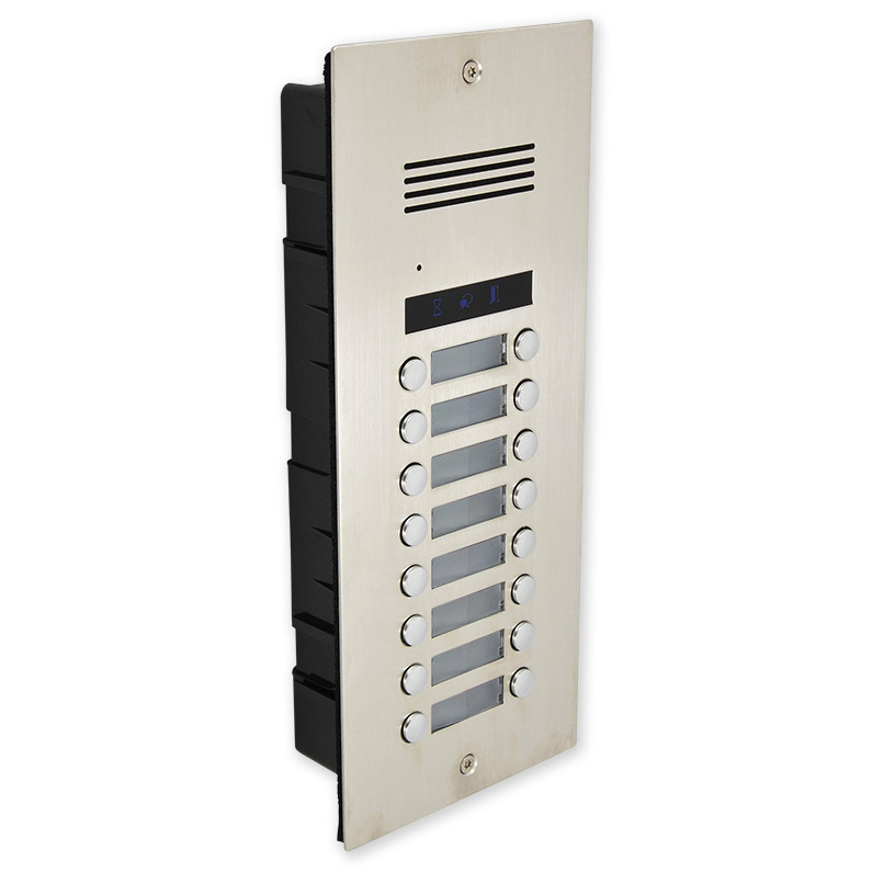 Venkovní zápustná dveřní audio jednotka s 16 vyzváněcími tlačítky, reproduktorem a mikrofonem.
