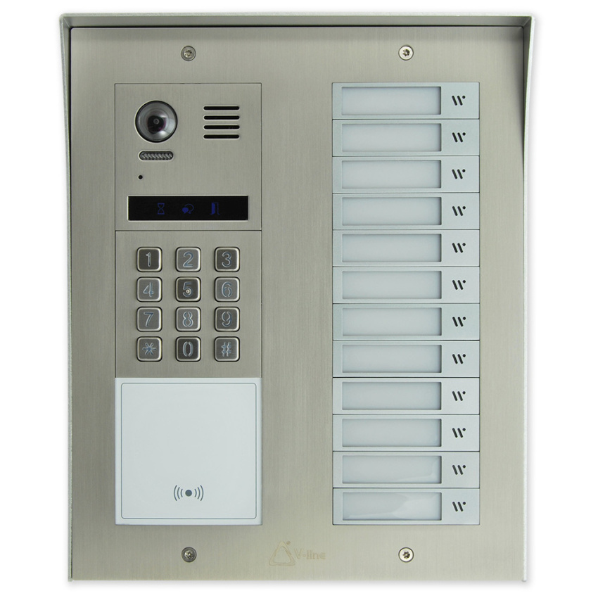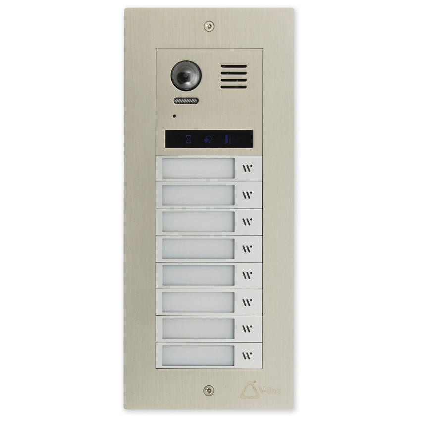 Hlavní video modul s reproduktorem a mikrofonem. Počet vyzváněcích tlačítek lze rozšířit pomocí tlačítkových modulů MOD-4TL až do maximálního počtu 32 adres.