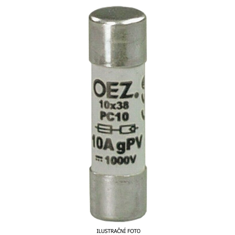 Pojistková vložka pro fotovoltaické systémy do 1000V d.c. (válcové). Pojistkové vložky typu PC10 jsou určeny pro jištění fotovoltaických systémů. Nízké hodnoty I2ta a omezených proudů. Malé rozměry a nízké ztráty. Možnost použití v držáku OPVF10. Pojistkové vložky neobsahují škodlivé látky dle nařízení RoHS (kadmium, olovo a ostatní). Charakteristika gPV pro jištění fotovoltaických systémů.