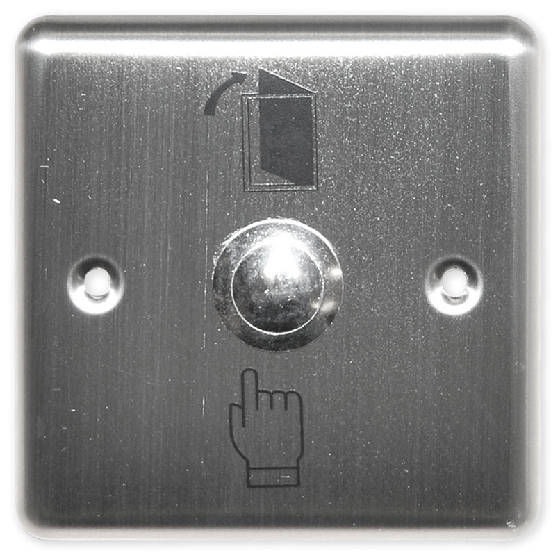 Odchodové tlačítko s NO kontaktem v nerezovém kovovém provedení s piktogramem otevření dveří.