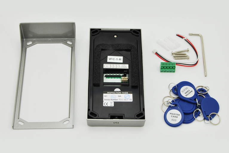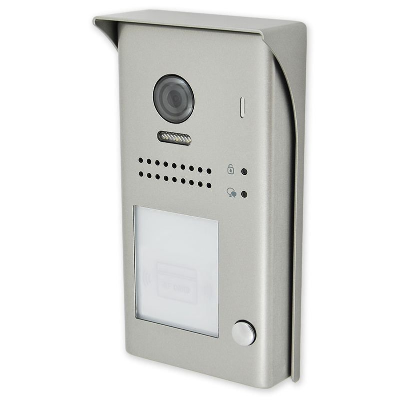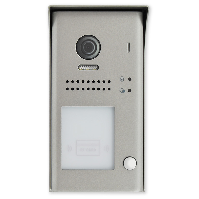 Venkovní dveřní jednotka s fisheye kamerou se 170° úhlem záběru a čtečkou karet. Obsahuje kameru, LED přisvícení, tlačítko zvonku, čtečku karet pro ovládání relé dveřního zámku, reproduktor a mikrofon.
