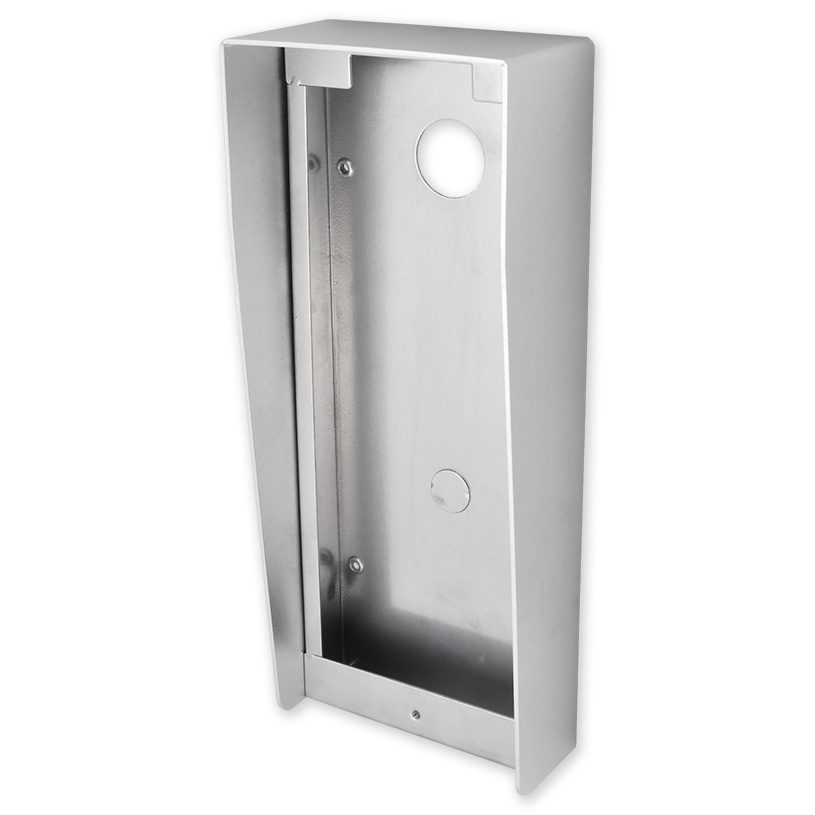 Venkovní kryt určený k povrchové montáži dveřních jednotek V4R(VVC-4-R), V8R(VVC-4.4-R), AV8, AV16 a pro rozšiřující dveřní jednotky VE12(VV-E12) a VE24(VV-E12.12). Kovové provedení ve stříbrné barvě.