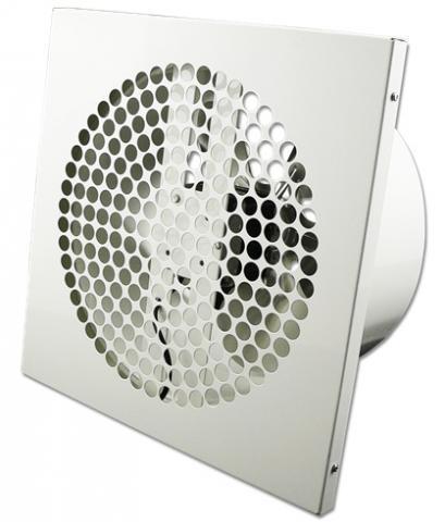 Nástěnný ventilátor, hlučnost 1m od zdroje: 64 dB. Součástí ventilátoru je zadní mřížka.