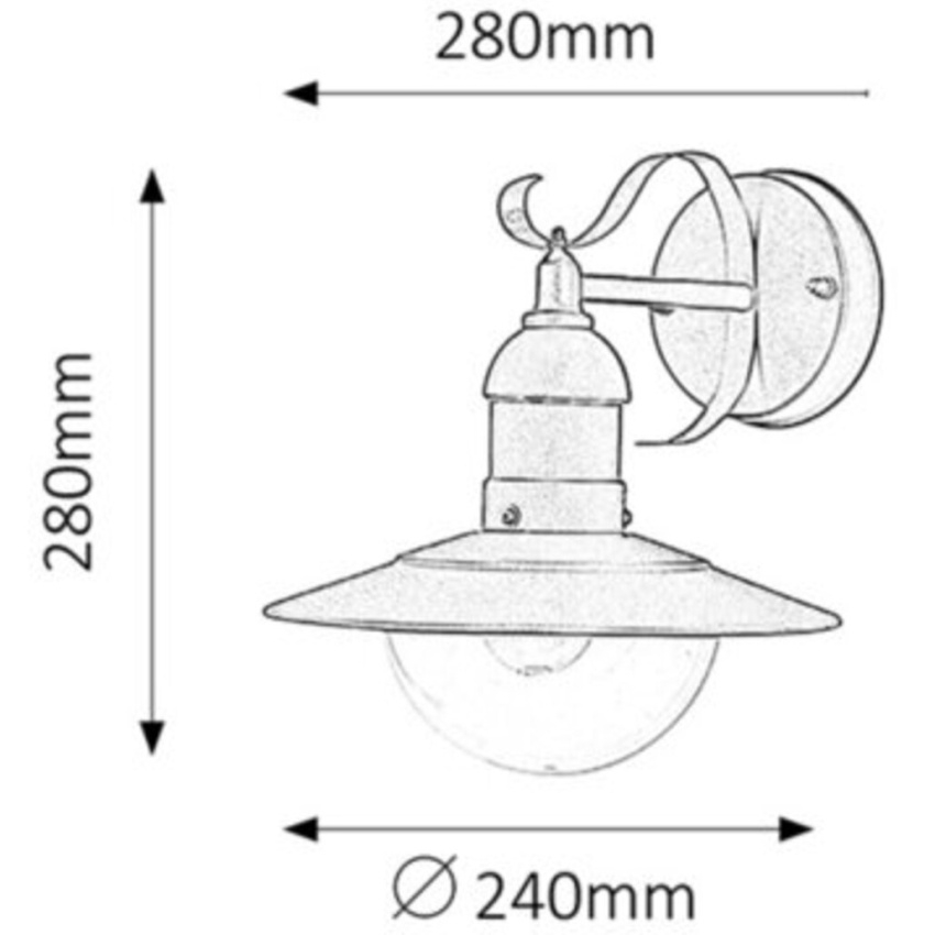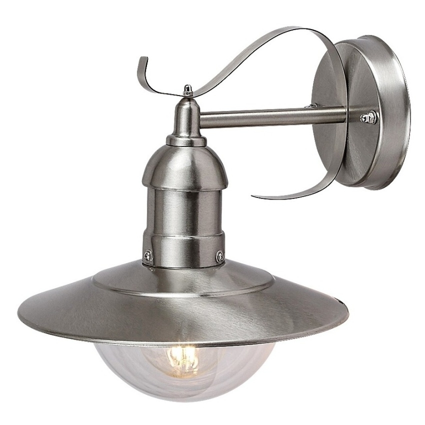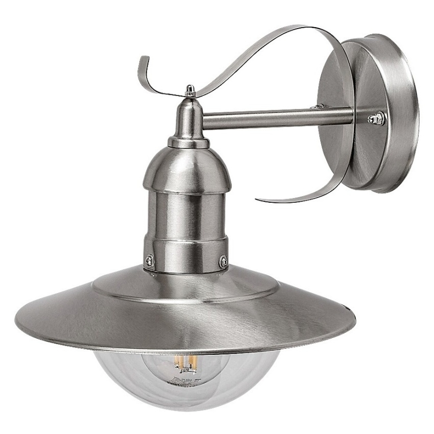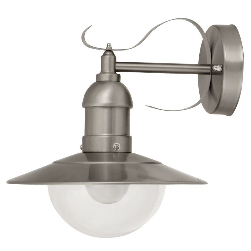 Venkovní nástěnné dekorativní svítidlo pro max. 60W žárovku nebo úspornou žárovku, s paticí E27. Krytí IP 44, barva nerez ocel.