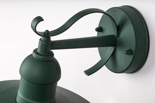 - Venkovní nástěnné svítidlo Oslo má sice klasický, až retro vzhled, ale je vyrobeno za pomoci moderních technologií. Výrobce klade důraz na kvalitu a nízkou spotřebu energie. Samozřejmostí je dodržení bezpečnostních norem, tudíž exteriérová lampa na zeď v tmavě zelené barvě odolává větru, dešti, mrazu, sněhu i přímému slunečnímu záření, aniž by docházelo k úrazům elektrickým proudem.