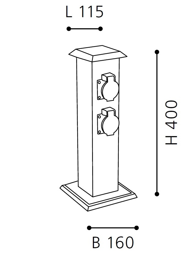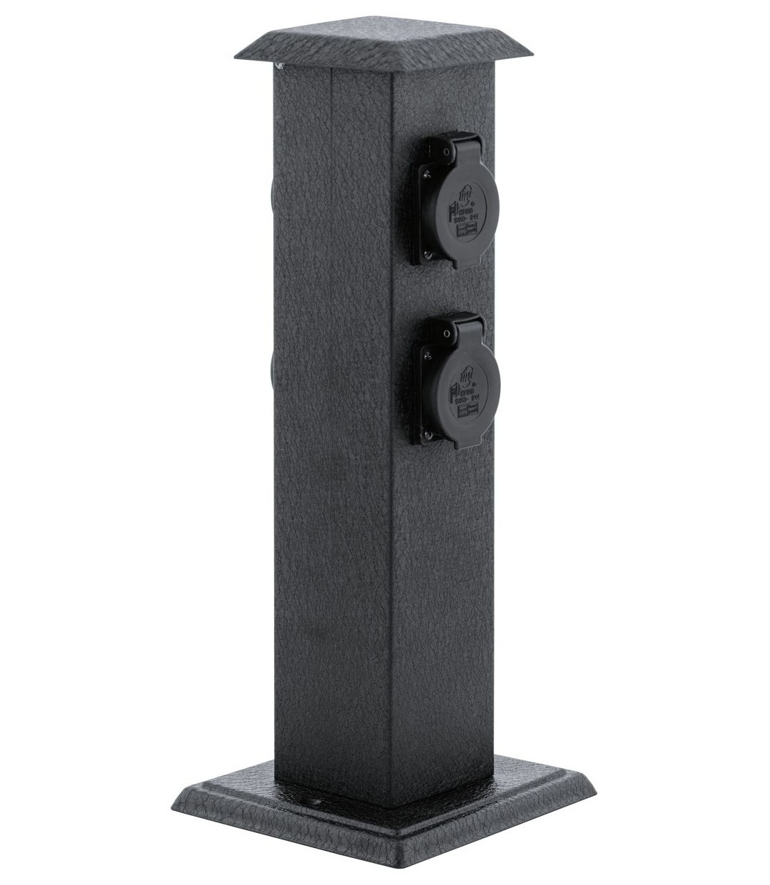 - Venkovní zásuvkový sloupek se čtyřmi zásuvkami vhodný pro připojení zahradních spotřebičů a svítidel.