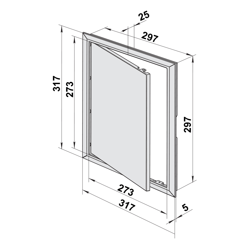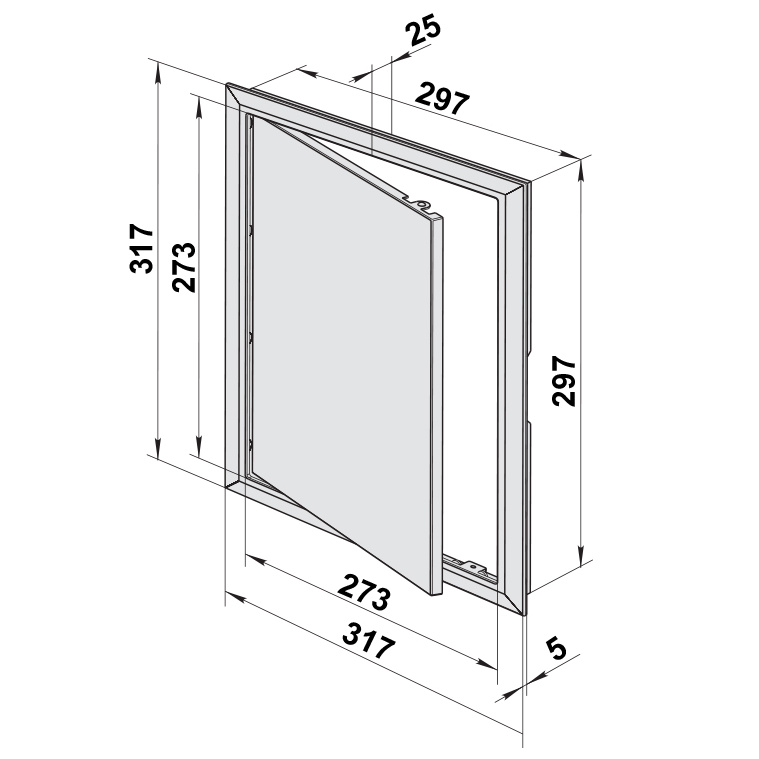 Plastová revizní dvířka typ D - jednokřídlá z plastu ABS v bílé barvě.