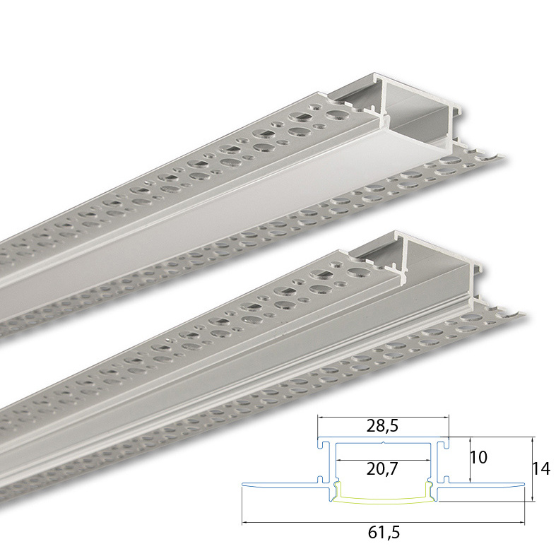 Vestavný hliníkový profil pro sádrokarton, rozměry průřezu cca 62x14 mm. Součástí je mléčný difuzor, který lze do profilu nacvaknout. Tento profil je určen pro krytí a chlazení LED pásků do šíře 20 mm a výkonu max. 18 W/m. Profil lze upevnit pomocí vrutů nebo lepidla. K profilu lze zakoupit také koncovky.