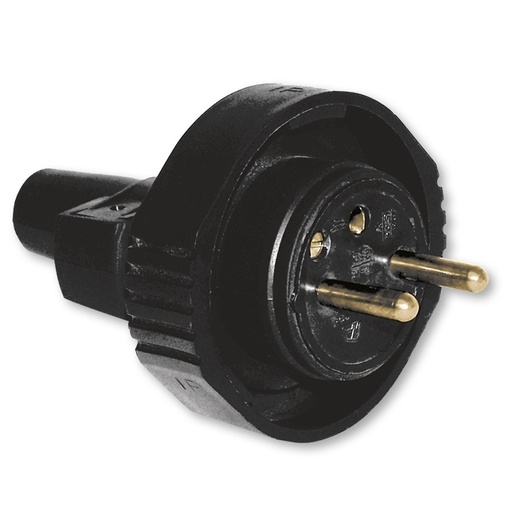 Vidlice dvojpólová IP 65 s ochranným kontaktem, s přímým vývodem. Pro kabel H07RN-F3G1,5 max.