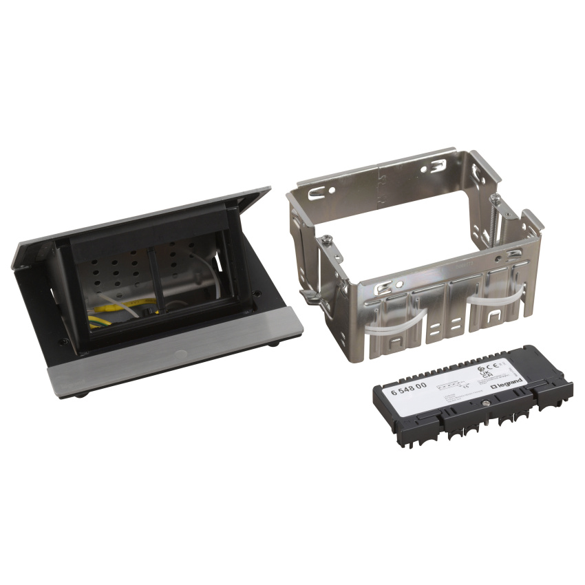 Výklopná zásuvková krabice do stolu Legrand Pop-up Incara 654800 4M broušený hliník