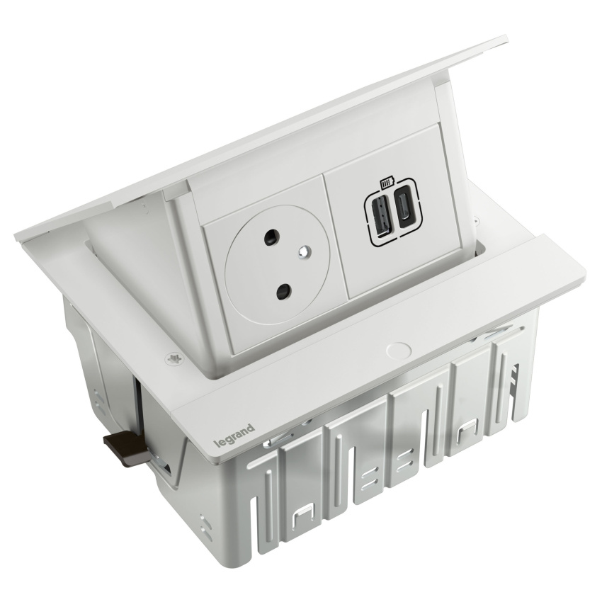 Výklopný zásuvkový blok Legrand Pop-up Incara 654817 4M USB A+C včetně 2m kabel s vidlicí