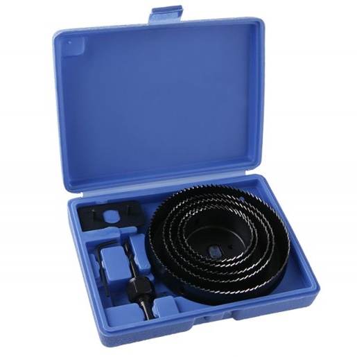 Sada vykružovacích pil 8ks do dřeva a sádrokartonu, průměr: 64,73,89,102,127 mm, inbus+hlavička.