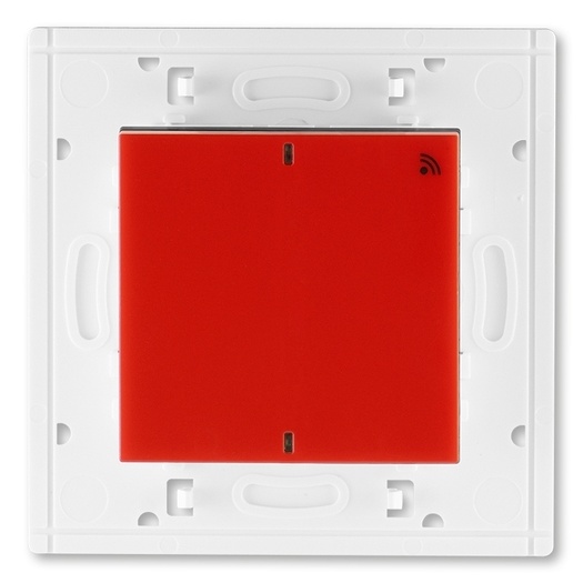 Vysílač RF jednonásobný, nástěnný při stisknutí jednotlivých částí hmatníku se vyšle odlišný kód (lze tak nezávisle ovládat jeden nebo dva přijímače).