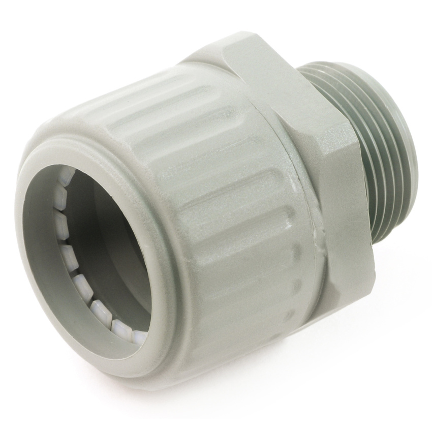 Přímá vývodka, bezhalogenová, patentovaný systém pro rychlou montáž, vysoká pevnost v tahu, s metrickým závitem podle IEC/EN 60423.