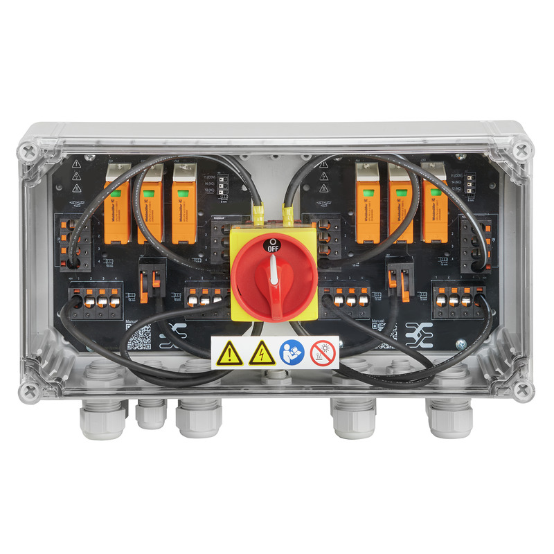 WEIDMÜLLER WEID SKŘÍŇ KOMBI. DC 2MPPT (3 VSTUPY/STRINGY NA 1 MPPT) SPD 1+2 S DC VYPÍNAČEM, VÝVODKY 2890570000