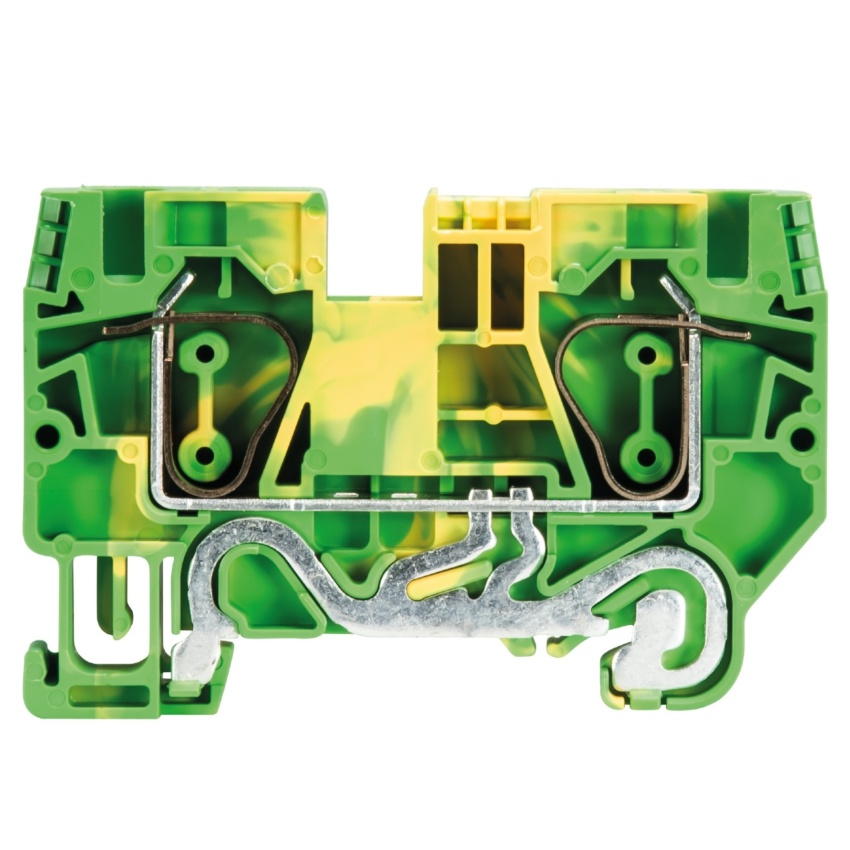 Zemnící bezšroubová svorka WKFN 6 SL/35, pro montáž na lištu TS 35. Bezpečné a bezúdržbové pružinové připojení, velmi kvalitní dynamické provedení kontaktů z ocelové pružiny a měděné proudové lišty, pohodlné přední připojení.