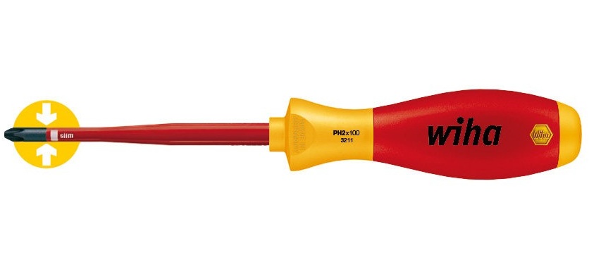 Zvyšuje vaši bezpečnost: Dříky Wiha slim zaručují neomezenou a plně izolovanou přístupnost k hluboko položeným šroubům.