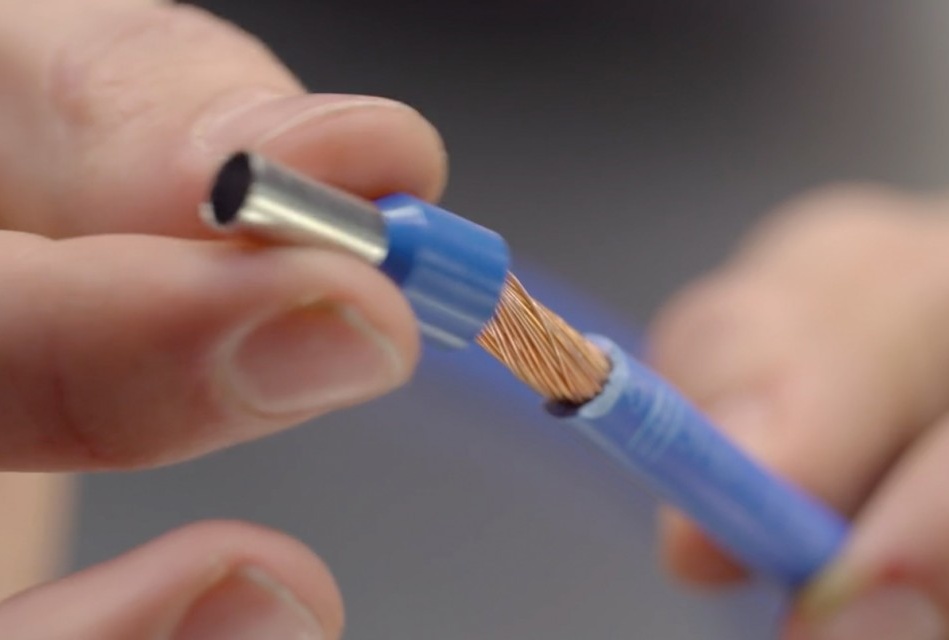 Zvyšuje vaši bezpečnost: Procesně bezpečná práce s pomocným zaváděním zabraňuje krimpování plastového pláště dutinky na konec vodiče.