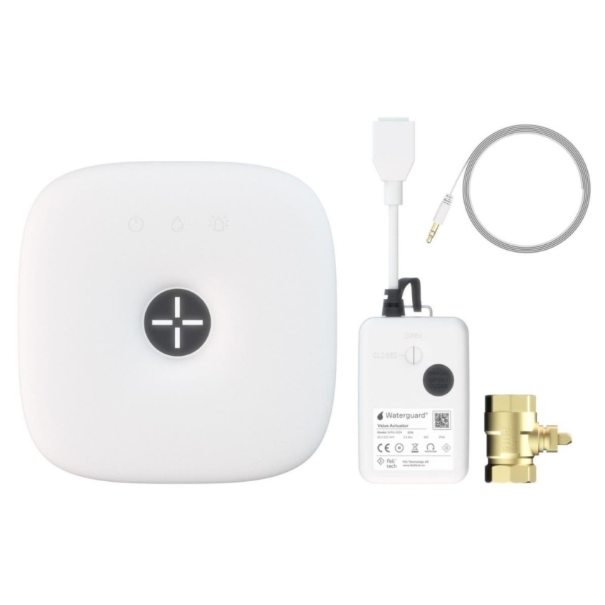 Waterguard+ Single 3/4″ PRO je pokročilý bezdrátový systém určený k detekci úniků vody a automatickému uzavření přívodu. Využívá 4G konektivitu a je vhodný pro domácnosti, rekreační objekty i komerční budovy. Zahrnuje řídicí jednotku Linkbox+, ventil DN20 (3/4″), senzorovou pásku a další instalační příslušenství. Systém splňuje evropské normy CE, REACH, RoHS a má schválení Sintef TG20834 v souladu s norskými předpisy TEK10 a TEK17.