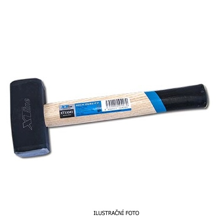 Hlava zajištěna dřevěným a kovovým kolíkem. Ocelovým páskem pod hlavou palice k vyztužení topůrka.