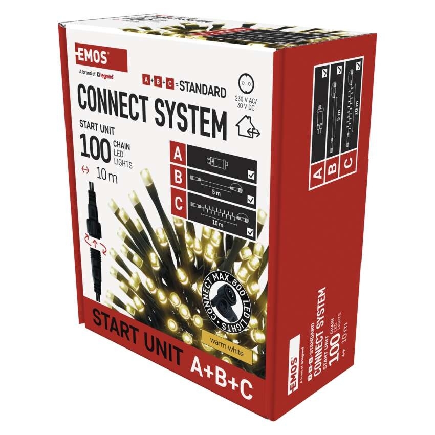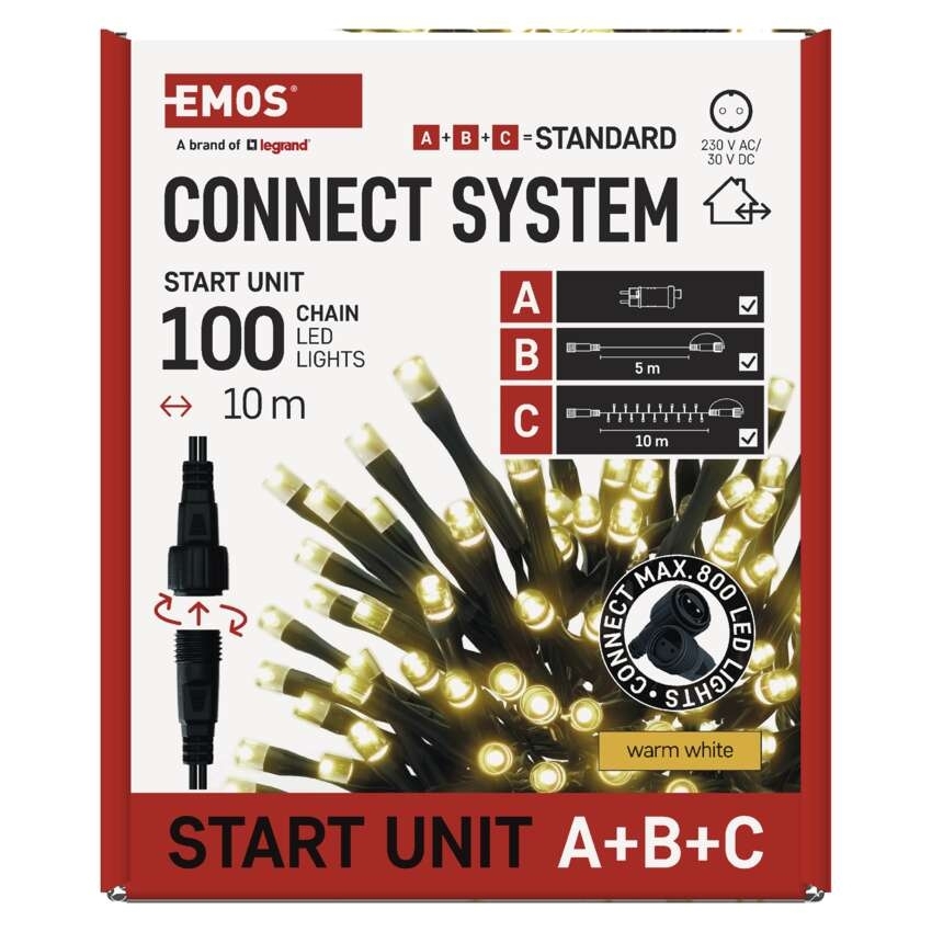 EMOS Základní sada pro spojovací řetězy Standard, 10 m, venkovní, teplá bílá, časovač