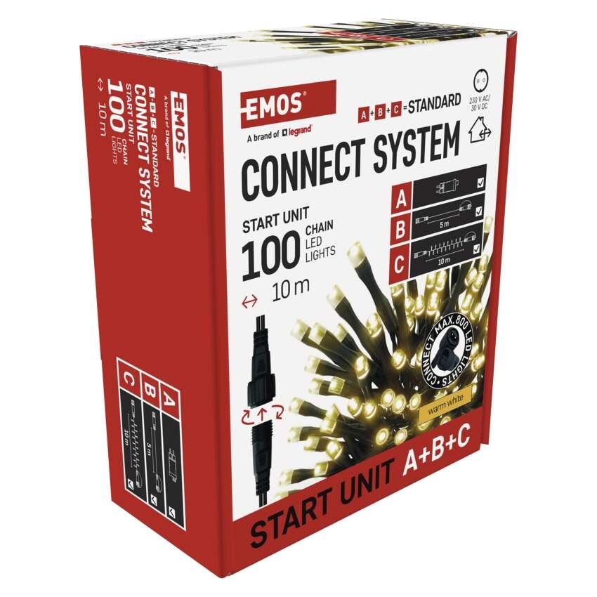Základní LED vánoční sada pro spojovací řetězy Standard EMOS D1AW01 100LED 10 m teplá bílá s časovačem