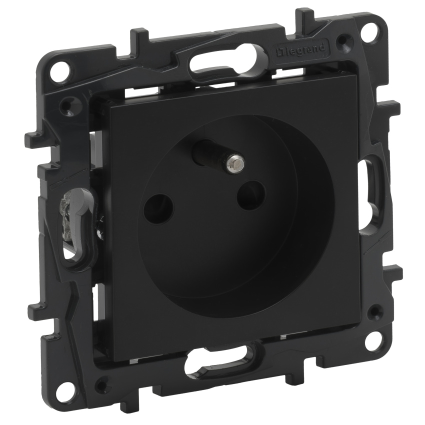 Zásuvka 2P+T s clonkami Legrand Niloé Step 863533, černá