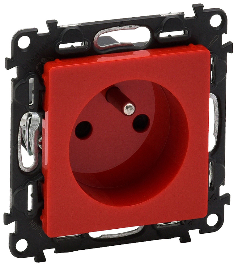 Zásuvka 2P + T s dětskou ochranou, bezšroubová, v červené barvě. 16 A - 250 V AC