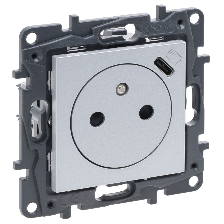 Zásuvka 2P+T/USB C Legrand Niloé Step 863338, hliník