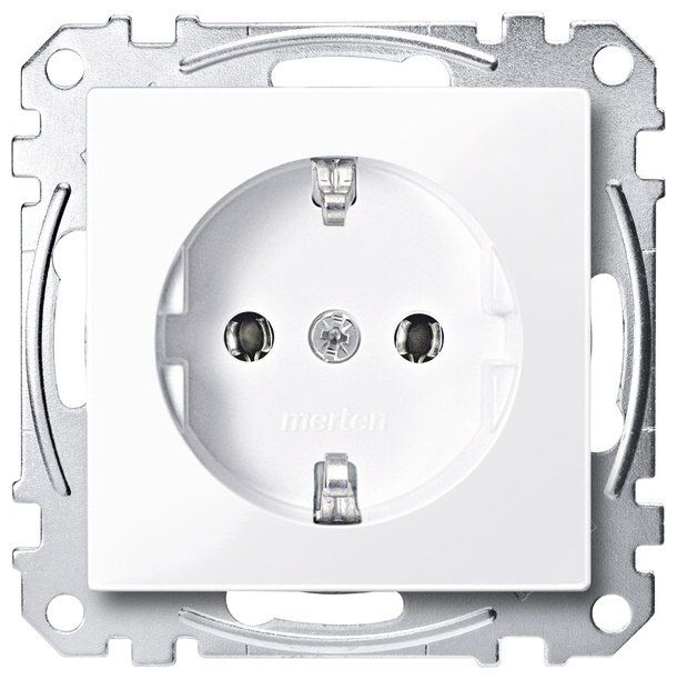 Socket-outlet, Merten System M, 2P + E, 16A, Schuko, screwless terminals, glossy, antibacterial, active white