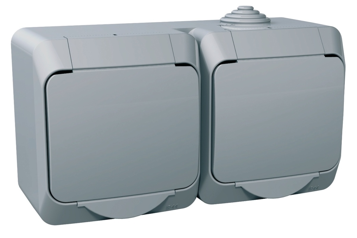 Schneider Electric WDE000623 Cedar Plus IP44 - Zásuvka dvojnásobná SCHUKO 230V 16A 2P+SE, šedá