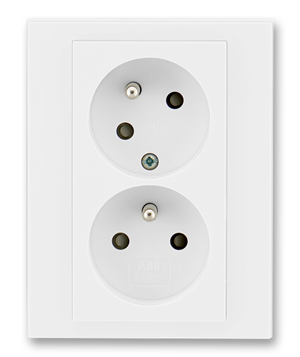Zásuvka dvojnásobná s ochrannými kolíky, s clonkami, s natočenou dutinou