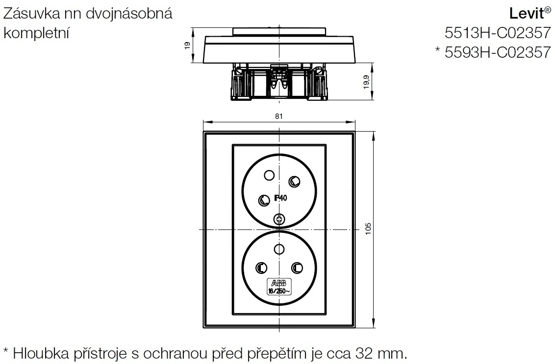 Zásuvka dvojnásobná s clonkami s natočenou dutinou ABB Levit 5513H-C02357 03 bílá/bílá