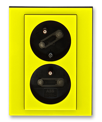 Zásuvka dvojnásobná s clonkami s natočenou dutinou ABB Levit 5513H-C02357 64 žlutá/kouřová černá
