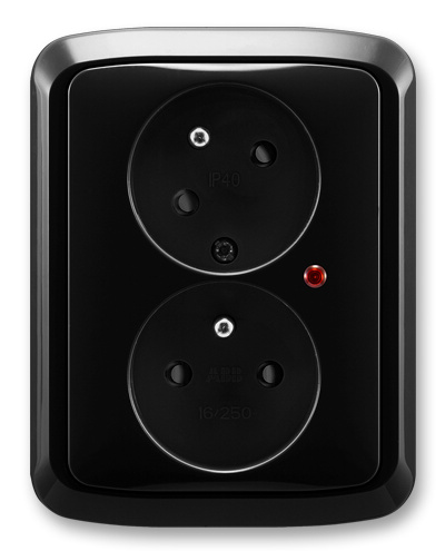 Zásuvka dvojnásobná s clonkami, s natočenou dutinou, s ochranou před přepětím ABB Tango 5593A-C02357 N černá
