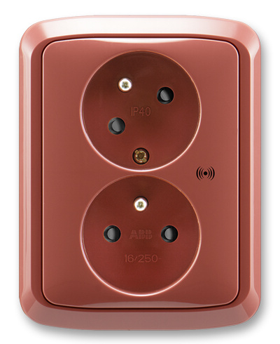 Zásuvka dvojnásobná s clonkami, s natočenou dutinou, s ochranou před přepětím ABB Tango 5583A-C02357 R2 vřesová červená