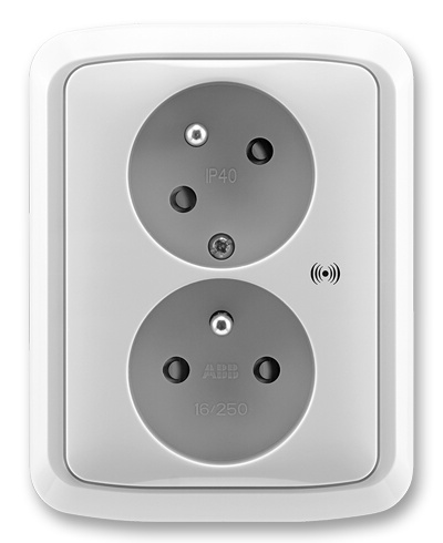 Zásuvka dvojnásobná s clonkami, s natočenou dutinou, s ochranou před přepětím ABB Tango 5583A-C02357 S šedá