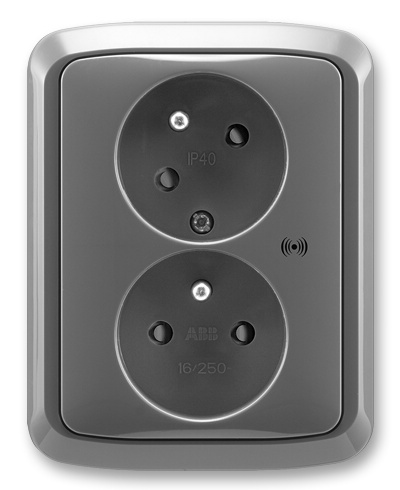 Zásuvka dvojnásobná s clonkami, s natočenou dutinou, s ochranou před přepětím ABB Tango 5583A-C02357 S2 kouřová šedá