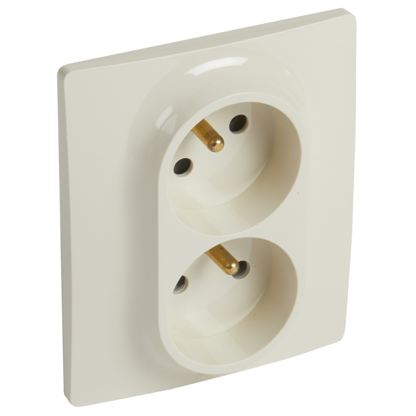 Zásuvka dvojnásobná s ochrannými kolíky 2x2P+T Legrand Niloé Step 764633, béžová