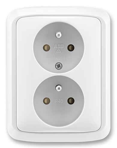Zásuvka dvojnásobná s ochrannými kolíky, s clonkami ABB Tango 5512A-2359 B bílá