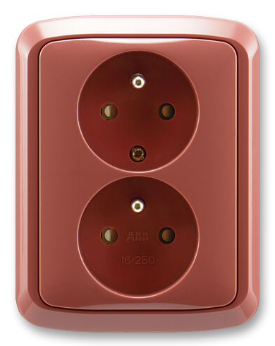 Zásuvka dvojnásobná s ochrannými kolíky, s clonkami ABB Tango 5512A-2359 R2 vřesová červená