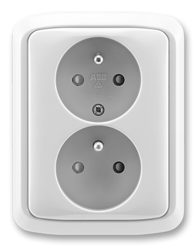 Zásuvka dvojnásobná s ochrannými kolíky, s clonkami ABB Tango 5512A-2359 S šedá