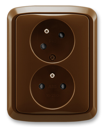 Zásuvka dvojnásobná s ochrannými kolíky, s clonkami, s natočenou dutinou ABB Tango 5513A-C02357 H hnědá