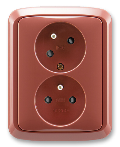 Zásuvka dvojnásobná s ochrannými kolíky, s clonkami, s natočenou dutinou ABB Tango 5513A-C02357 R2 vřesová červená