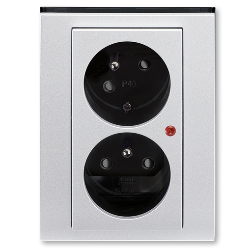 Levit M zásuvka dvojnásobná s natočenou dutinkou, s ochranou před přepětím, s optickou signalizací titanová/kouřová čern